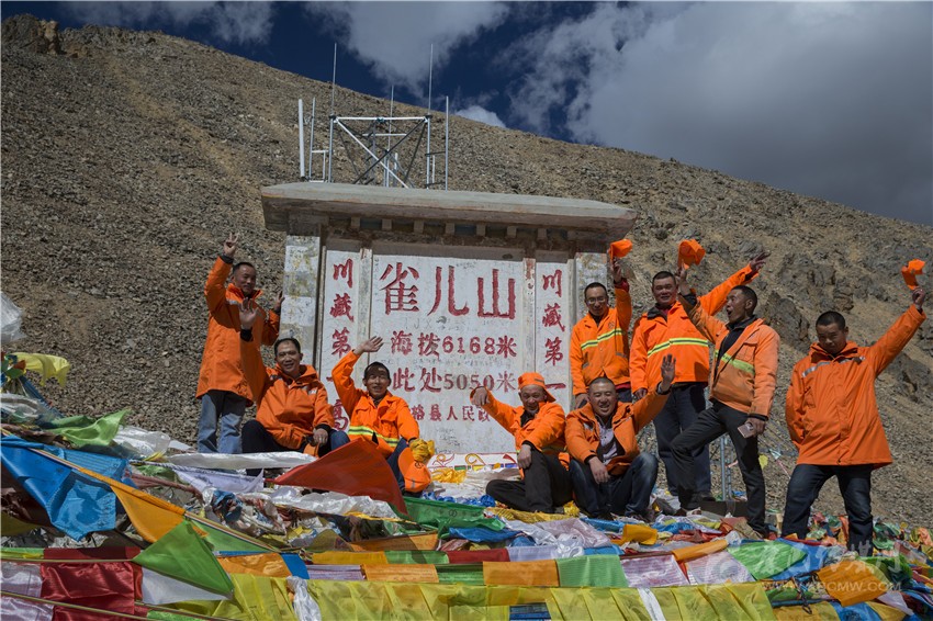 該做的活路做完了,9個(gè)人再一次來到山埡口那個(gè)立有標(biāo)牌的地方,為他們每一個(gè)人拍下了一張紀(jì)念照,他們說雀兒山將不會再有道班房了,這張照片就是他們永遠(yuǎn)的紀(jì)念。說完他們從懷中掏出才從山下買來的龍達(dá),這是藏族人民驅(qū)災(zāi)祈福的信物,迎著呼呼的大風(fēng),揚(yáng)手拋上了藍(lán)天。不知是誰發(fā)出了哭聲,于是9個(gè)人都哭了,9個(gè)漢子的哭聲在5050米的高度揮撒開來是何等的豪邁!