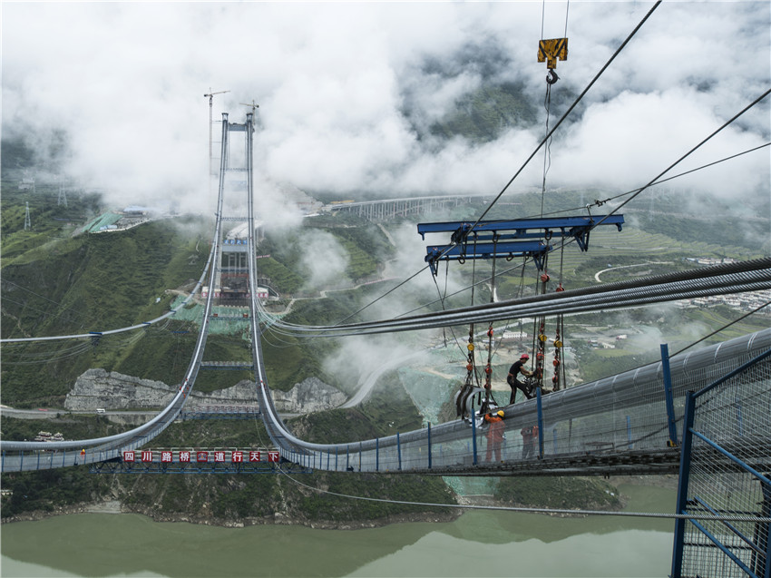 2017年“川藏第一橋”的雅康高速瀘定大渡河興康特大橋架設。游蓉萍 攝