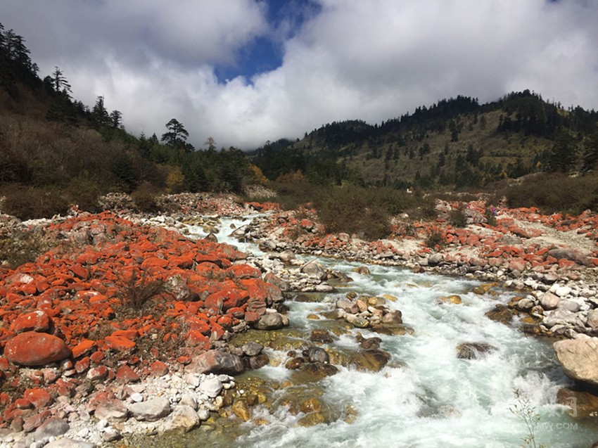 曾經(jīng)有科學(xué)家將海螺溝的紅石帶出去研究,結(jié)果剛下飛機(jī),發(fā)現(xiàn)石頭上的紅色褪了,因?yàn)榭諝赓|(zhì)量不好,導(dǎo)致石頭上的喬利橘色藻無法生存。