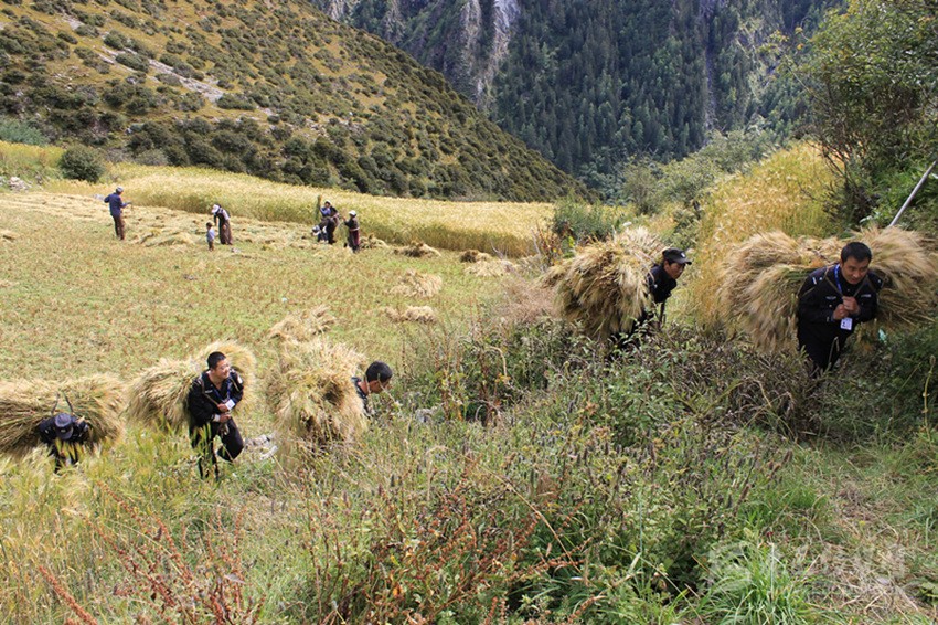 秋收地里的警察親戚。袁博 攝