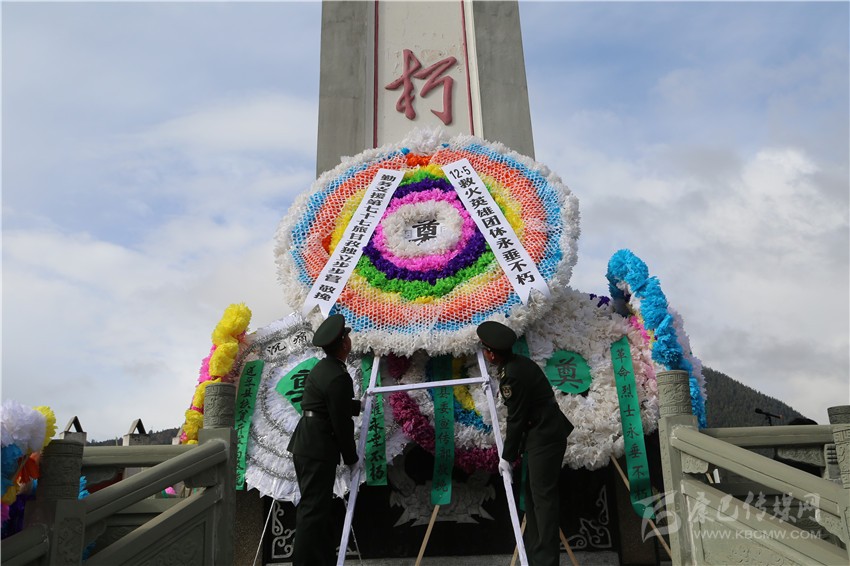 一束鮮花寄哀思。祭掃活動在悲壯的哀樂聲中開始,各單位、各部門向革命烈士紀念碑敬獻了花圈。