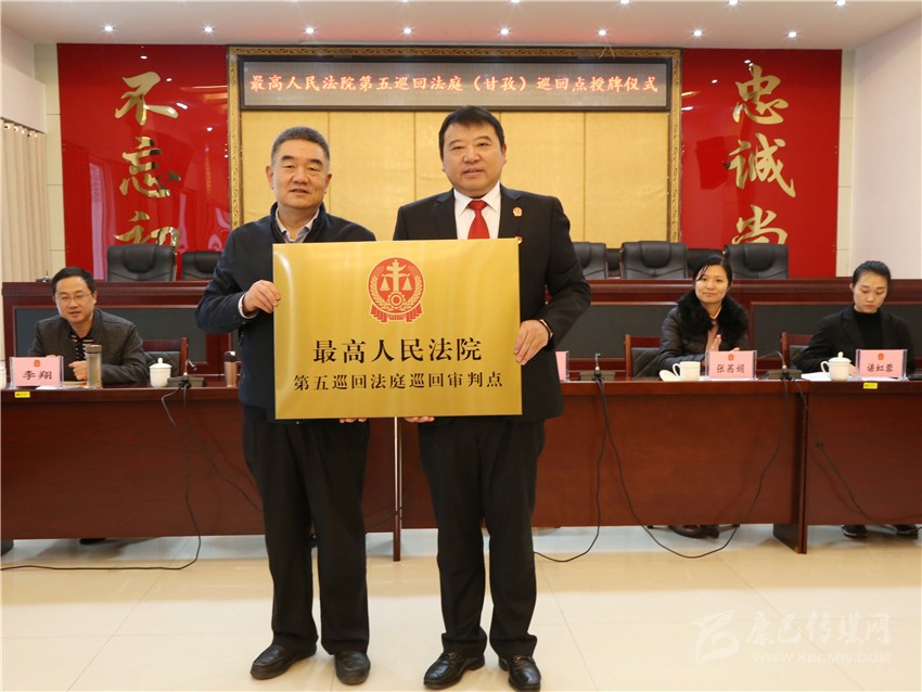 本網(wǎng)訊 11月13日,最高人民法院第五巡回法庭(甘孜)巡回審判點(diǎn)授牌儀式在甘孜州中級(jí)人民法院舉行,此次在四川設(shè)立兩個(gè)巡回點(diǎn),州中級(jí)人民法院是授牌點(diǎn)之一。最高人民法院第五巡回法庭分黨組成員、副庭長(zhǎng)汪國(guó)獻(xiàn)為該院授牌并在儀式上作講話,甘孜州中級(jí)人民法院黨組書(shū)記、代理院長(zhǎng)付寶接牌并作相關(guān)工作匯報(bào)。