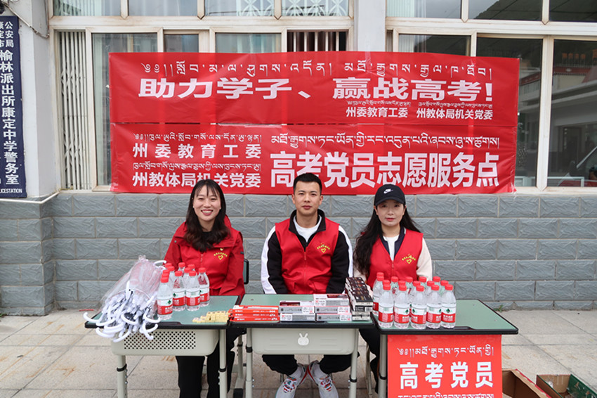 值得一提的是,除了公安交警部門的全程護航外,各職能部門對高考考生也傾注了許多關愛。記者在康定中學考點看到,州委教育工委、州教體局等部門還設立了高考黨員志愿服務點,免費為考生提供文具、雨具、礦泉水等。