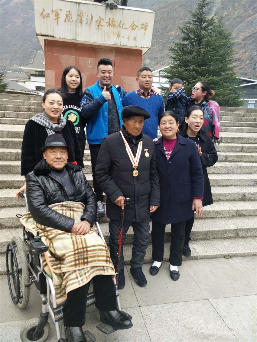 王瑞生專門(mén)帶領(lǐng)28名兒孫們前往瀘定橋紀(jì)念碑前合影,向他們講述紅軍長(zhǎng)征這段歷史。他說(shuō)得最多的一句話就是,“只有共產(chǎn)黨才能給我們帶來(lái)幸福生活,要不忘黨恩,回報(bào)社會(huì)?!崩先颂厥獾募t軍情結(jié)感染著兒孫們,老人傳承著紅軍精神,不忘初心,永遠(yuǎn)向前?!袄先松砩象w現(xiàn)的不向困難低頭,堅(jiān)強(qiáng)不屈的精神,正是當(dāng)前開(kāi)展精準(zhǔn)扶貧工作所需要倡導(dǎo)的精神,只要我們發(fā)揚(yáng)紅軍精神,就一定能夠過(guò)上好日子?!崩先说膶O子告訴記者,在老人的激勵(lì)下,現(xiàn)在家人昂揚(yáng)向上,幸福美滿。