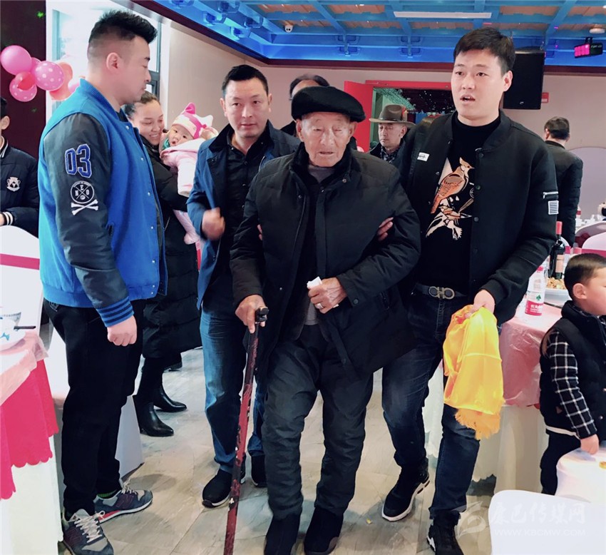 3月5日,在瀘定縣烹壩鄉(xiāng)十里香酒店,按照當(dāng)?shù)貍鹘y(tǒng),王瑞生的兒孫們提前為他隆重過(guò)百歲大壽。雖然已近百歲高齡,但王瑞生精神矍鑠,思路清晰,談吐自如,面色紅潤(rùn)的他身著簡(jiǎn)樸,胸前始終戴著2016年由中共中央、中央軍委頒發(fā)的“中國(guó)工農(nóng)紅軍長(zhǎng)征勝利80周年紀(jì)念章”,接受親友們的祝福?!白D】甸L(zhǎng)壽,開(kāi)開(kāi)心心”。親人們不絕于耳的祝福,老人心滿意足,笑容滿面?!昂茫?,我的家人團(tuán)圓和睦,家庭幸福,是我最大的心愿。”如今,老人已是四世同堂,家人濟(jì)濟(jì)一堂,親情流淌,老人幸福開(kāi)懷。