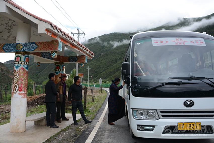 “加洛,快點(diǎn)喲,公交車要開了?!?/span>6月25日8時56分,在白玉縣農(nóng)村公交車納塔始發(fā)點(diǎn),記者看到坐上農(nóng)村公交車的白玉縣納塔鄉(xiāng)納塔村村民俄洛招呼著鄰居加洛。