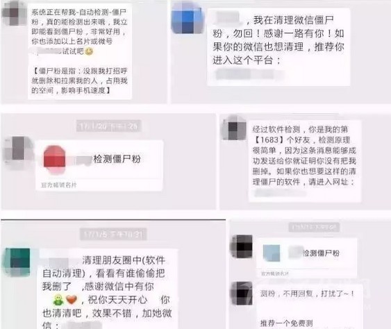 不少網(wǎng)友的微信都會(huì)收到類似“xxx你好,清理下朋友圈,效果不錯(cuò)。真是不清不知道,一清嚇一跳。需要清理可加微信***”這樣的信息,表示可以通過(guò)專業(yè)手段找到所有刪除、拉黑、或屏蔽自己的“僵尸粉”,清理微信的聯(lián)系人,可以“釋放手機(jī)內(nèi)存”。