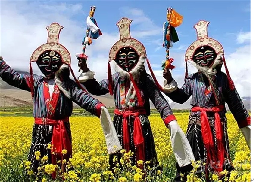 葩,意為面具。是藏族同胞在節(jié)日慶典期間,跳舞時(shí)戴在頭上的裝飾品,面具有各種不同形狀、不同色彩和表現(xiàn)風(fēng)格。根據(jù)制作材料的不同可分為泥料、布料、皮料等不同種類(lèi)的面具。頭像面具初始于十三世紀(jì)末, 除表現(xiàn)人物形象的面具以外,與此同時(shí)表現(xiàn)飛禽走獸形象之類(lèi)的面具亦隨之問(wèn)世。