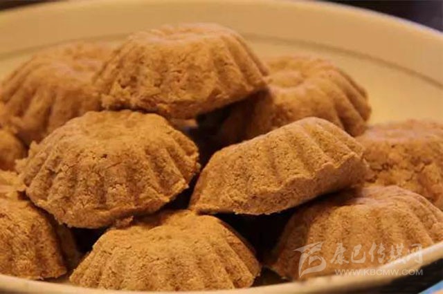 藏族酥酪糕是藏族的著名糕點(diǎn),在藏族同胞的家里常用作款待客人的美味點(diǎn)心。而且它本身具有很好的保健功效,能夠在品嘗美食的同時(shí)又滋補(bǔ)身體。藏族酥酪糕食用起來奶味濃郁,十分受到不同年齡及族群的喜愛,其中還有多種對身體十分有益的材料,例如西藏人參果就是一種純天然無污染的滋補(bǔ)食品。酥酪糕是用提取過奶油后的乳白色淀粉(藏名曲熱)晾干后,用磨磨成粉末,拌入黃油(奶油)、白糖、角麻(人參果)、葡萄干、桃仁等,做成橢圓形、方形,表面有紅絲綠絲擺成圖案,表現(xiàn)吉祥、長壽,放入籠屜內(nèi)蒸熟,賓至可整塊獻(xiàn)上,或切成片狀。據(jù)說它有滋補(bǔ)強(qiáng)身之功效。