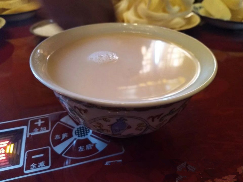 牛奶除提取酥油外,藏族民眾還用它制作奶茶或酸奶子。酸奶子康區(qū)稱“學(xué)”,有兩種,一種是用鮮奶發(fā)酵制成,味帶甜:一種是用提煉過酥油的奶發(fā)酵制成,味酸。酸奶狀似豆花,可直接或放糖飲用,有時用饃饃或鍋魁蘸著吃。酸奶子不僅是草原夏天的飲料,也是藏族民眾充饑解渴的食品。