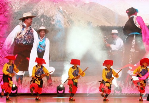甘孜州地處高原,各縣地域環(huán)境、語言均有差異,且地近內(nèi)地,漢族、彝族、納西族音樂文化也有浸溶,因而民歌體裁、音韻、調(diào)式不全同于其他藏區(qū)。甘孜州的歌和舞,在不同縣之間,甚至同一個(gè)縣因山溝、村落不同,也存在較大差異,故呈多姿多彩狀況,藏族民歌極為豐富多彩,兩性相愛有情歌,勞動(dòng)之時(shí)有勞動(dòng)歌,伐薪、放牧有山歌,新友相聚有酒歌,婚嫁有婚禮歌,勸人勤于耕作有月會(huì)歌,還有新房落成歌,游春之時(shí)要跳弦子、鍋莊、踢踏舞,還要打“箍箍卦歌”等。總之是無時(shí)不歌,無事不歌,人人能歌善舞,故甘孜州有“歌舞海洋”之美稱。