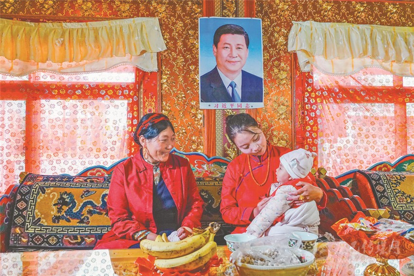 仙乃日渾身浸透高貴氣質(zhì)。頂峰終年積雪不化,其山形酷似一個(gè)身體后仰的大佛,傲然端坐在蓮花座里,她的懷中抱著一個(gè)巨大的佛塔,陽(yáng)光照在仙乃日神山上金光燦燦。